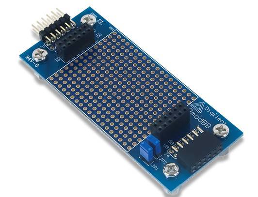 PmodBBは、システムボード上のPmodヘッダーに直接接続できる便利なプロトタイピングプラットフォームです。14×19のワイヤーラップ表面と170本のタイポイントのはんだレスブレッドボードがあり、ボードの上にぴったりと置くことができます。